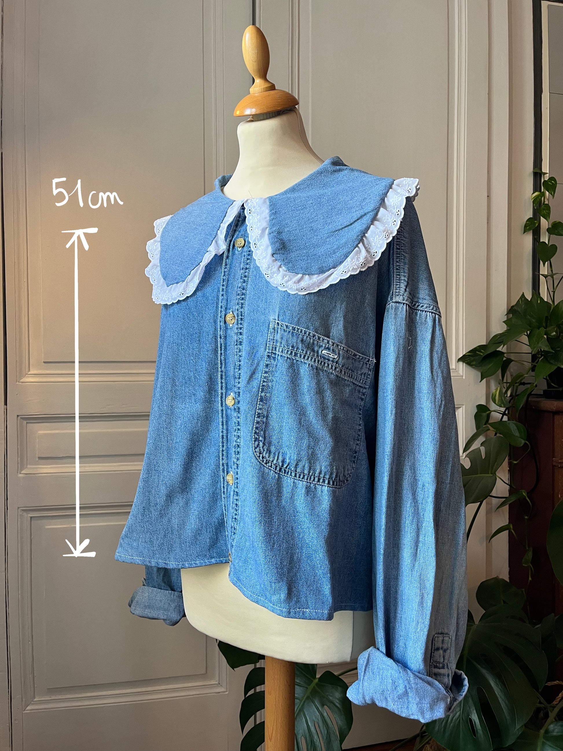 - Chaque chemise upcyclée a une coupe légèrement oversize