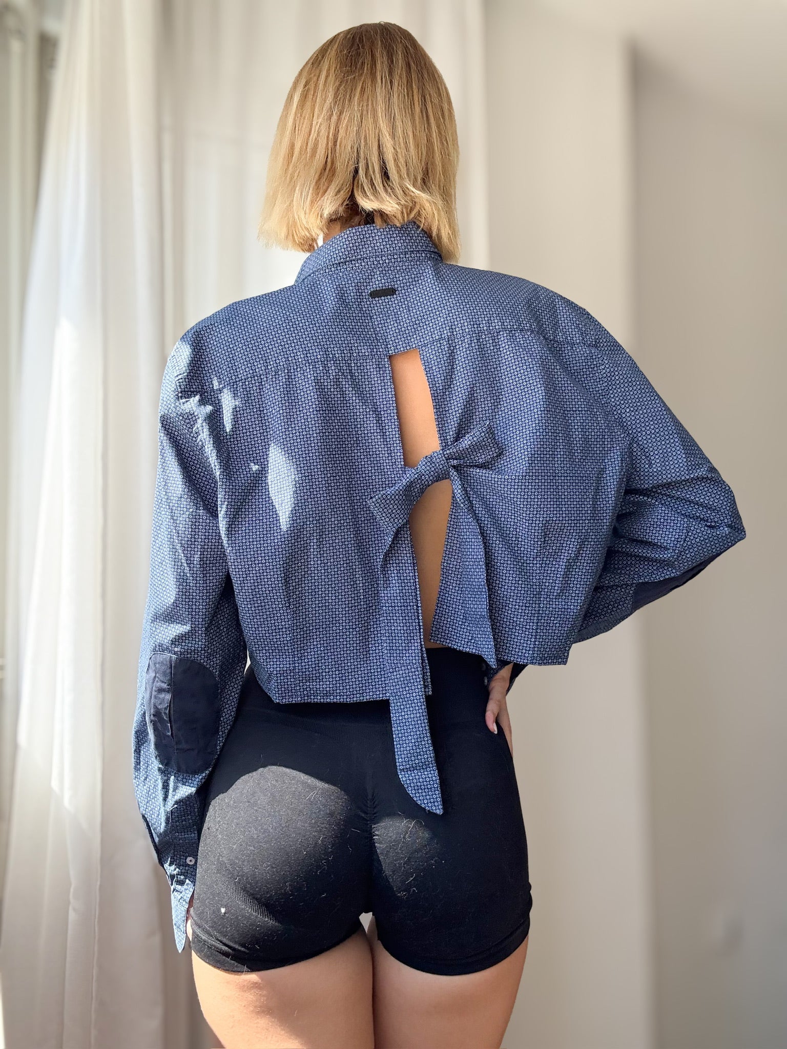 Faite à partir de chemises chinées et transformée à Lyon, cette blouse unique allie style et respect de l’environnement.