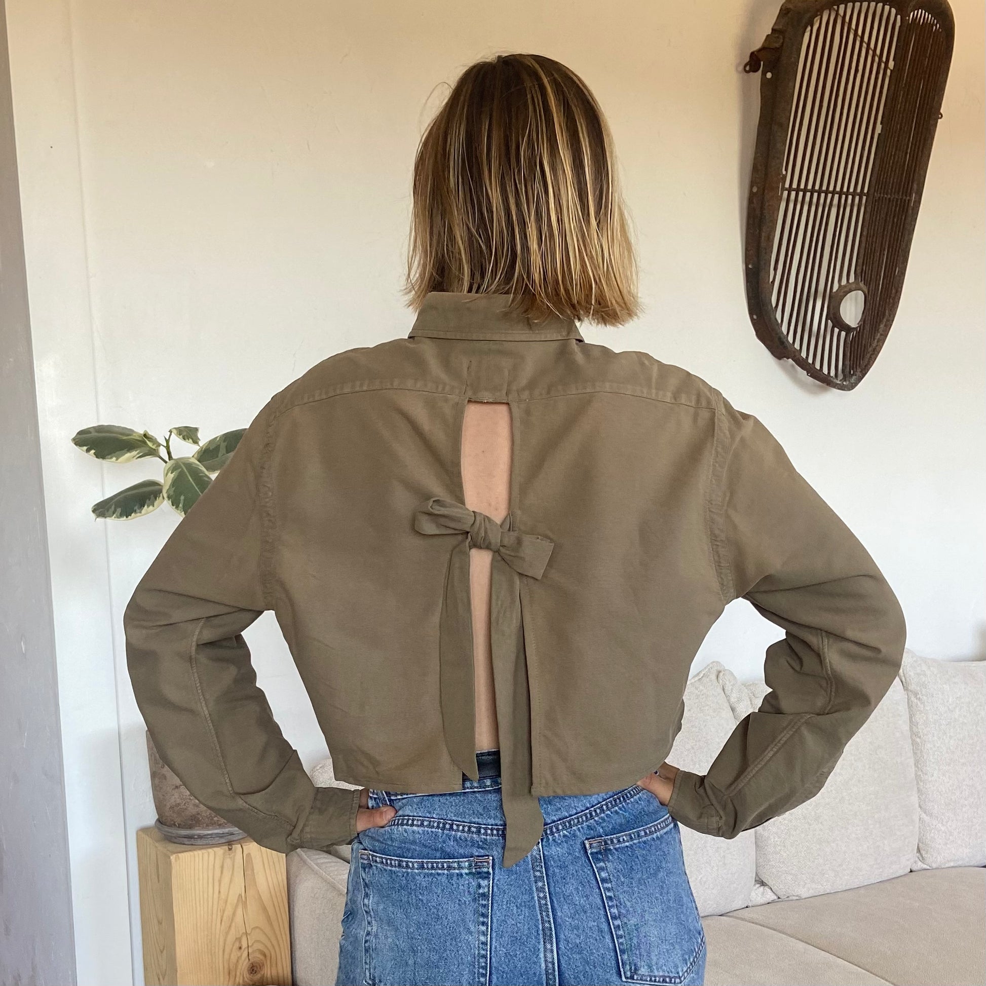 Faite à partir de chemises chinées et transformée à Lyon, cette blouse unique allie style et respect de l’environnement.