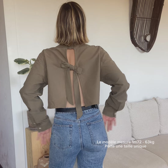 La blouse a une coupe oversize et fluide qui flatte toutes les silhouettes. La longueur peut varier légèrement d’un modèle à l’autre.