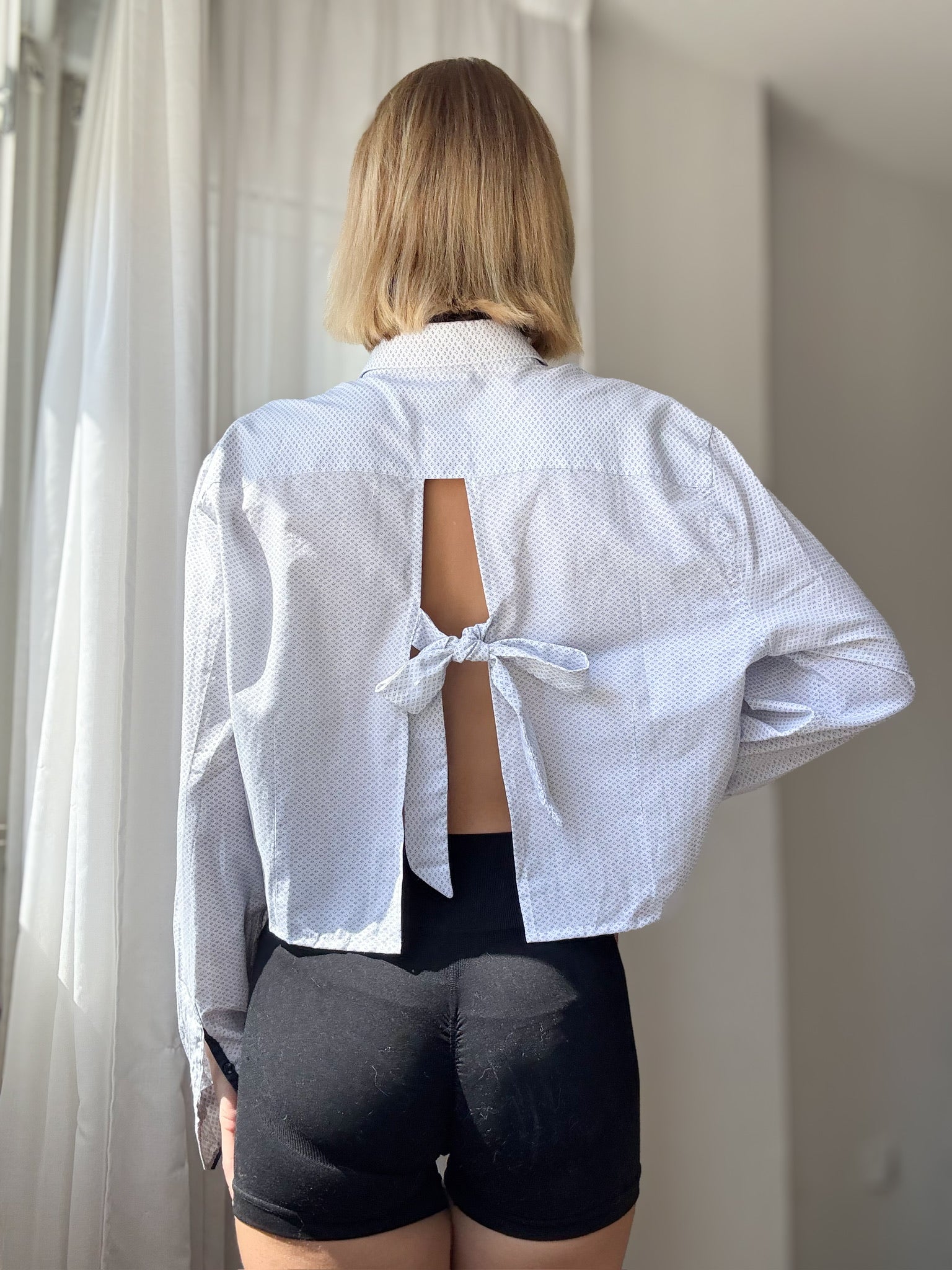 Sa coupe fluide va à toutes les silhouettes, et son lien à nouer dans le dos dévoile juste ce qu’il faut pour attirer le regard.