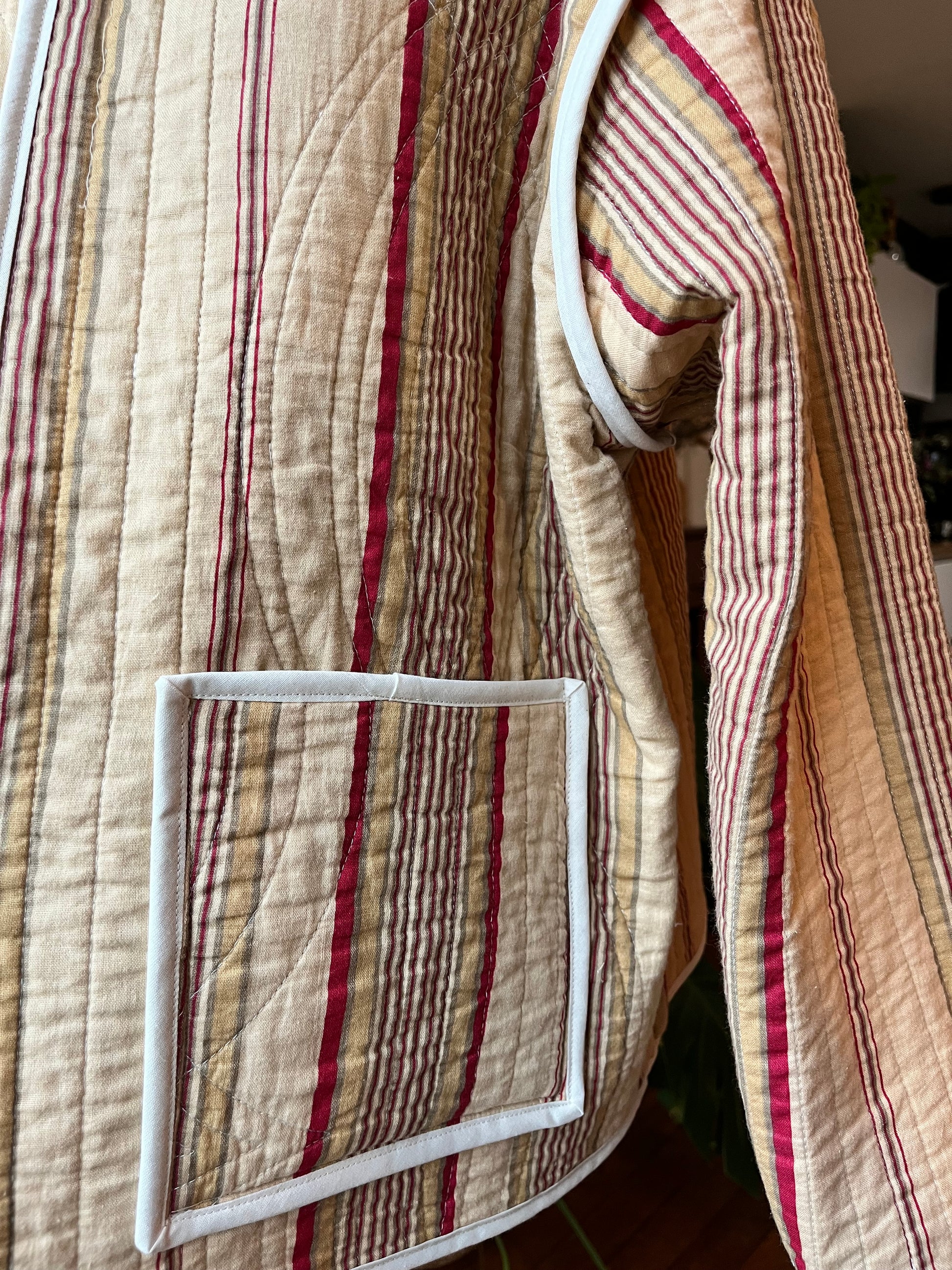 Note Importante : Avec chaque couverture matelassée, nous pouvons réaliser 2 vestes. En raison du stock limité de cette collection, assurez-vous de commander rapidement avant l'épuisement des stocks. Chaque veste est une pièce unique, ne manquez pas de vous démarquer